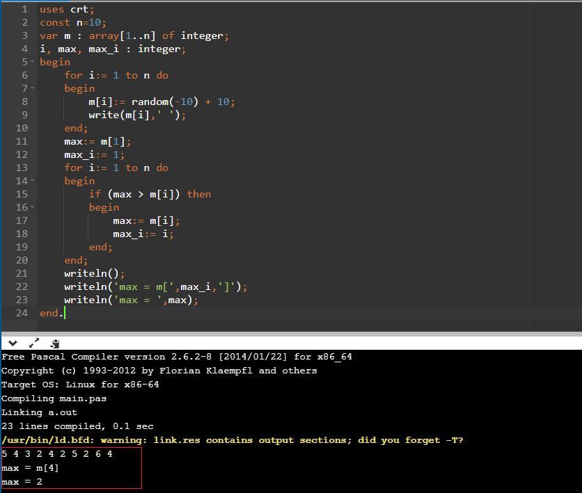 writeln('max = m[',max_i,']');