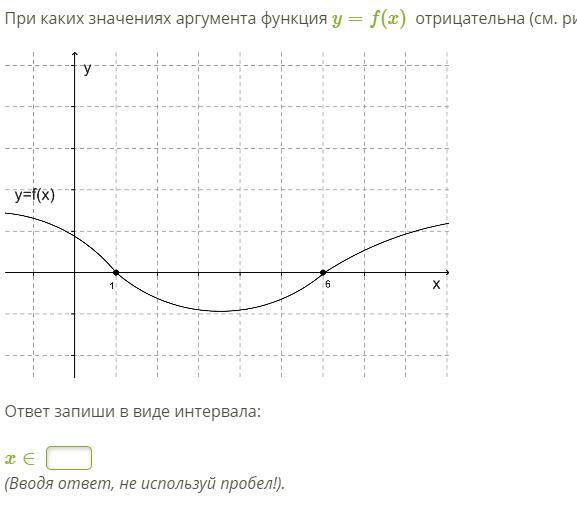 Функция будет отрицательна от 1 до 6( что ниже и находится, где у отрицателен). Ответ (1;6)