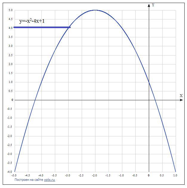 Тогда у(-2)=-(-2)²-4(-2)+1. у(-2)=-4+8+1. у(-2)=5. Так как это парабола с ветвями, направленными вниз, то все ее остальные значения будут меньше 5. Значит область значений меняется от (-∞) до 5 включительно.