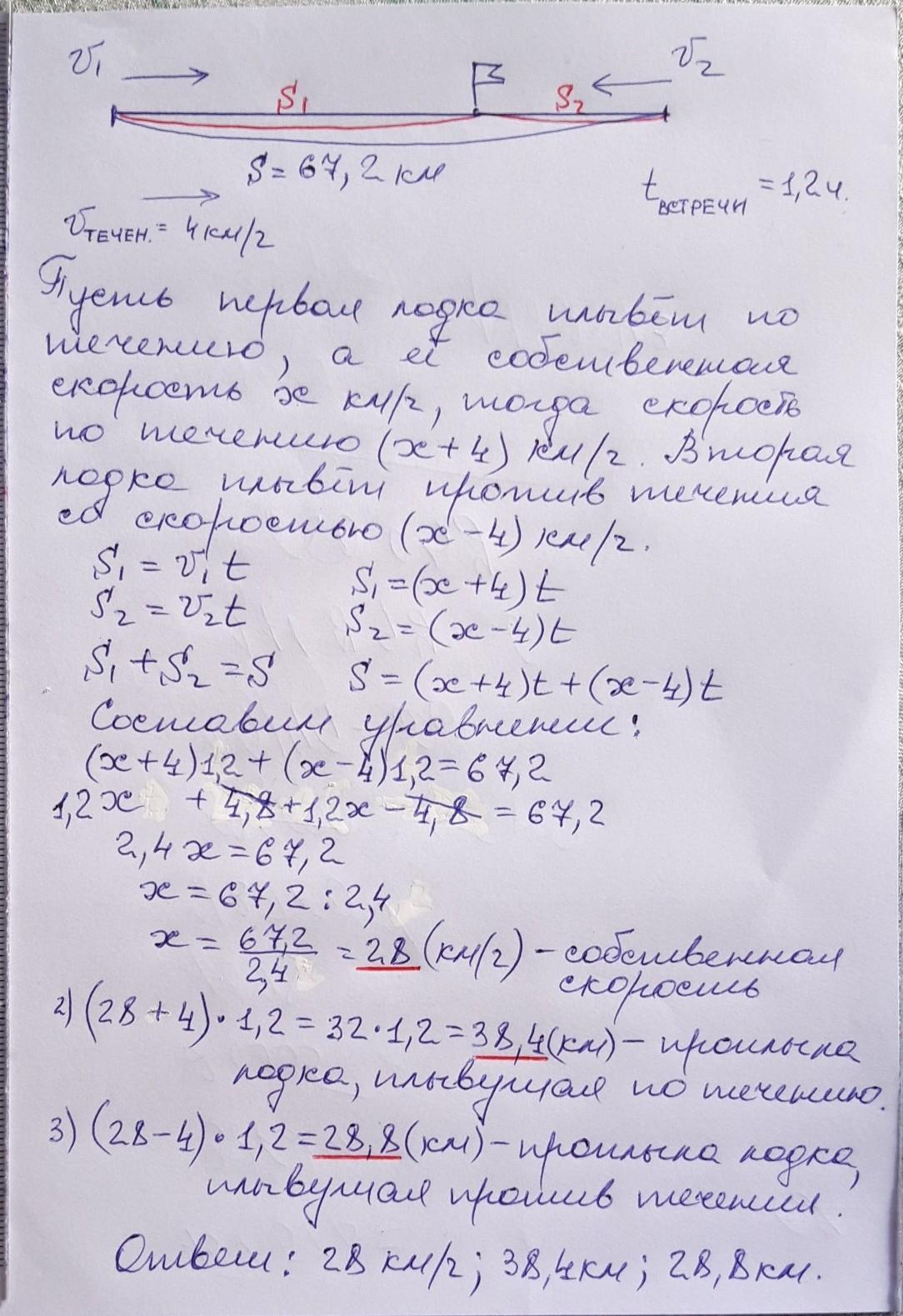 Сколько километров до места встречи пройдет лодка, плывущая против течения? ...