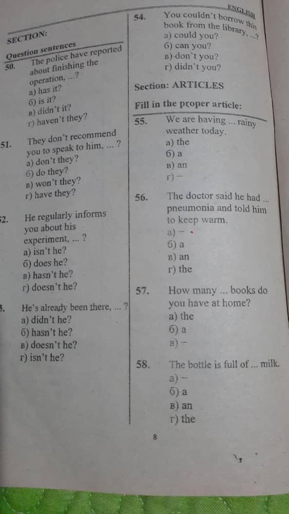 Section: ARTICLES Fill in the proper article: