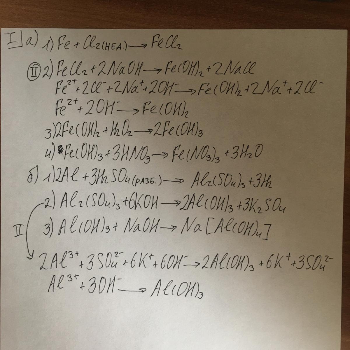 а) железо → хлорид железа (II) → гидроксид железа (II) →