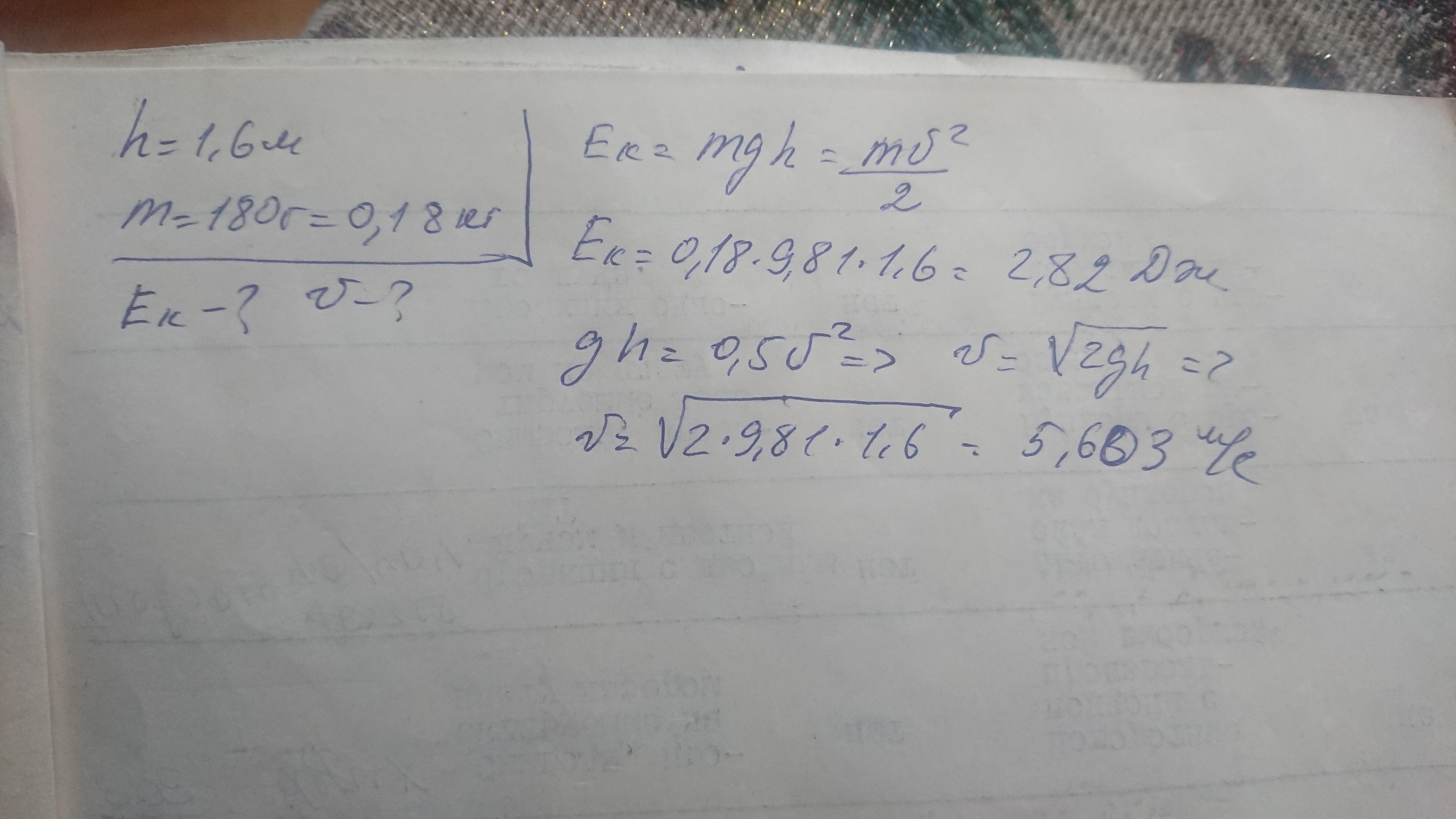 Яблоко массой 180 г свободно падает с ветки яблони на высоте 1,6 м на землю.