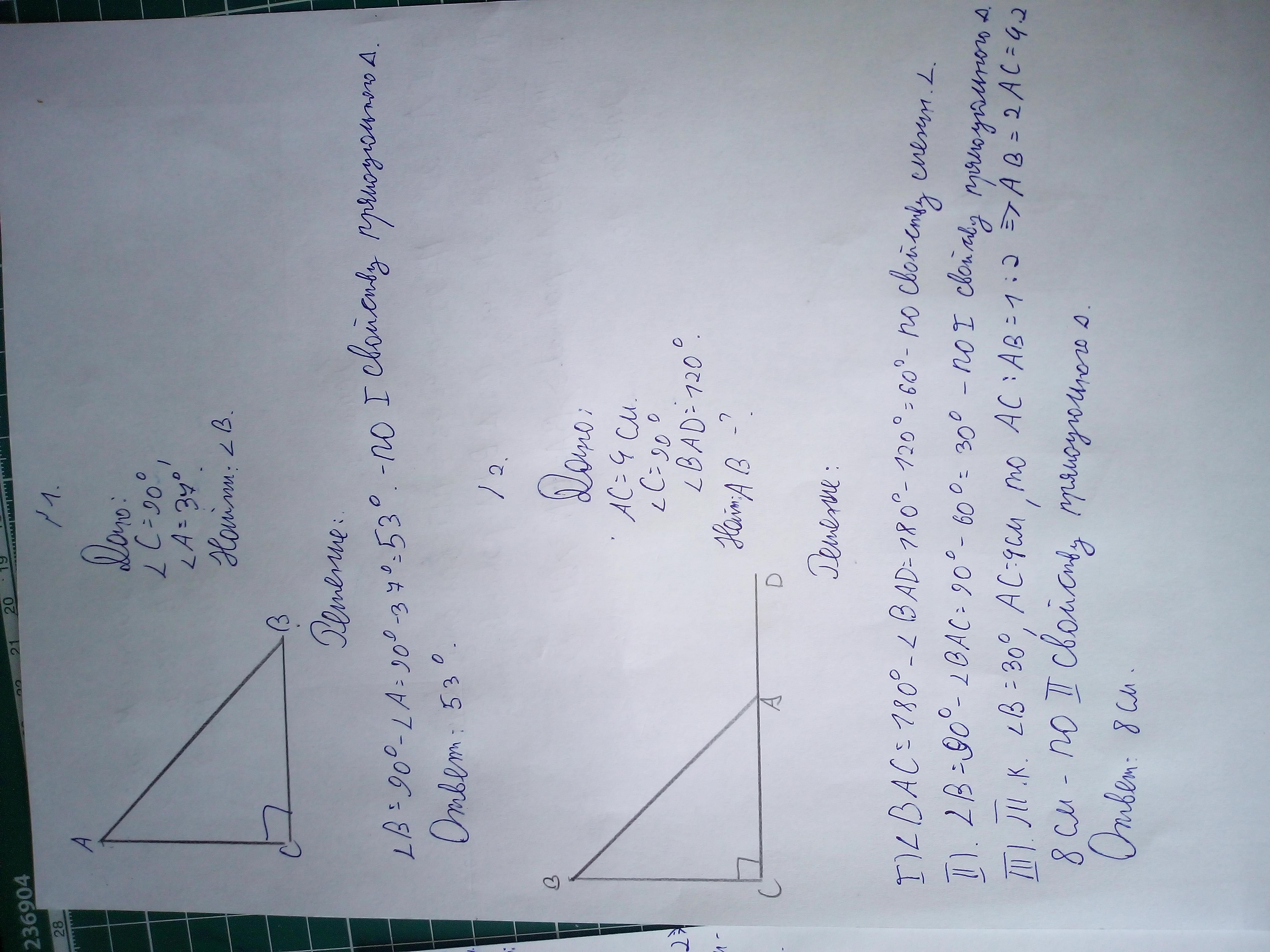 Ответ: первая задача 53 градуса, вторая задача 8 см, 3 задача 7,5 см.