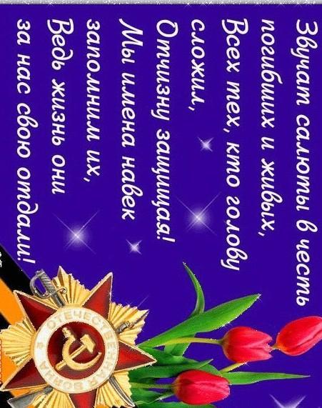 Ответ: Fireworks sound in honor of the dead and the living, All those who laid their heads, Defending the Fatherland! We will forever remember their names, After all, they gave their lives for us!