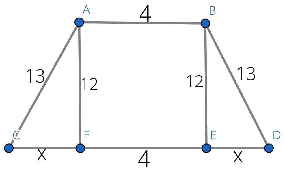 бічна сторона рівнобічної трапеції дорівнює 13 см, а її висота 12 см. Знайдіть площу трапеції, якщо її менша основа дорівнює 4 см