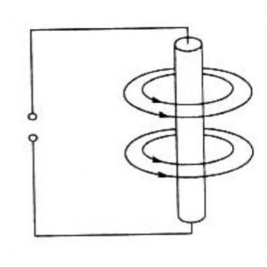 по направлению линий магнитного поля проводника с током определите и укажите на рисунке направление тока в проводнике. Знаками + и - обозначьте полюса источника тока