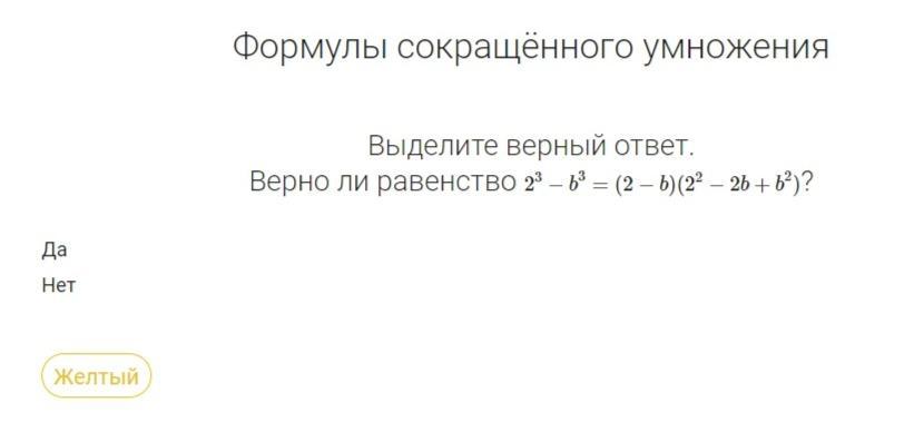 Верно ли равенство 2³−b³=(2−b)(2²−2b+b²)?