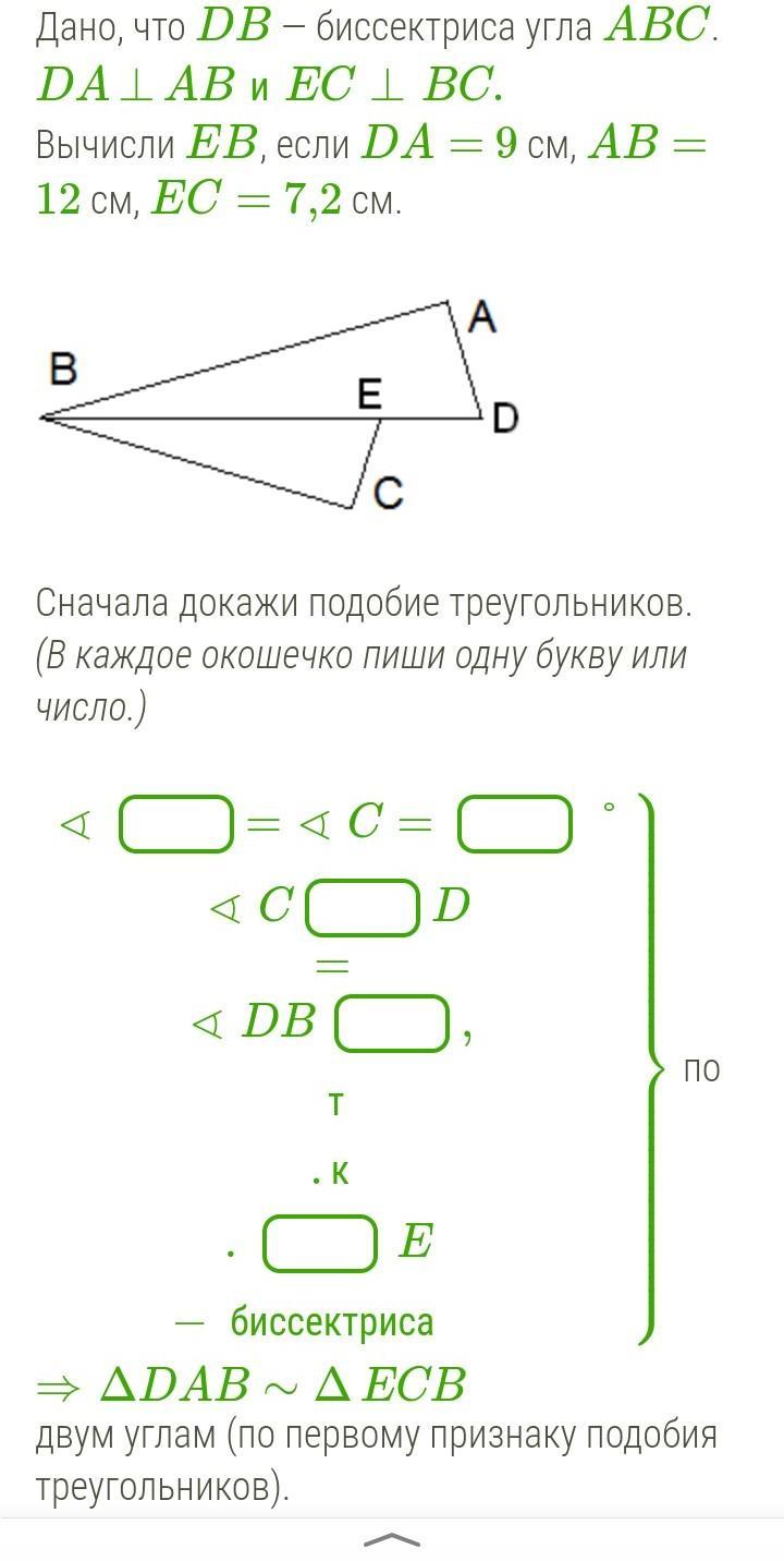 х= (АВ*ЕС)/АД следовательно х=(12*7,2)/9=9,6