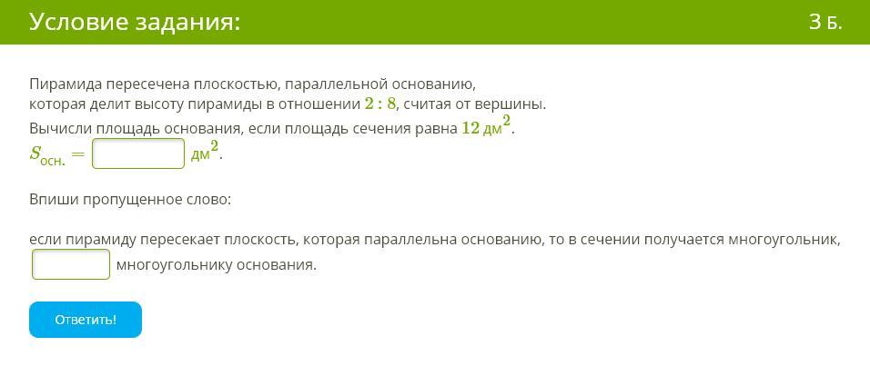 Тут проблема есть: не сказали, что это за пирамида. Она может быть как треугольной, так и 12угольной. А от этого очень многое зависит.