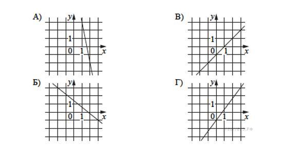 14) Установите соответствие между графиками линейных функций и угловыми коэффициентами прямых.