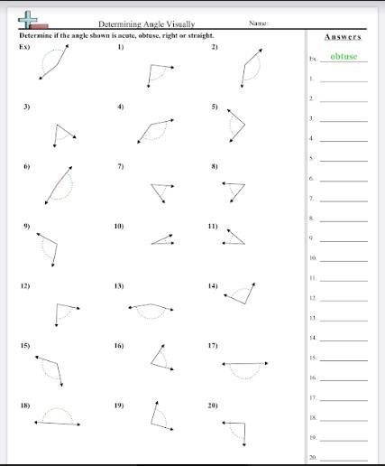 1) прямой 2)тупой 3)острый 4)тупой 5)прямой 6)тупой 7)острый 8) острый 9) тупой 10)острый 11)острый 12)острый 13)тупой 14)прямой 15)тупой 16)острый 17)развёрнутый(тупой) 18)развёрнутый(тупой)19)прямой 20)острый