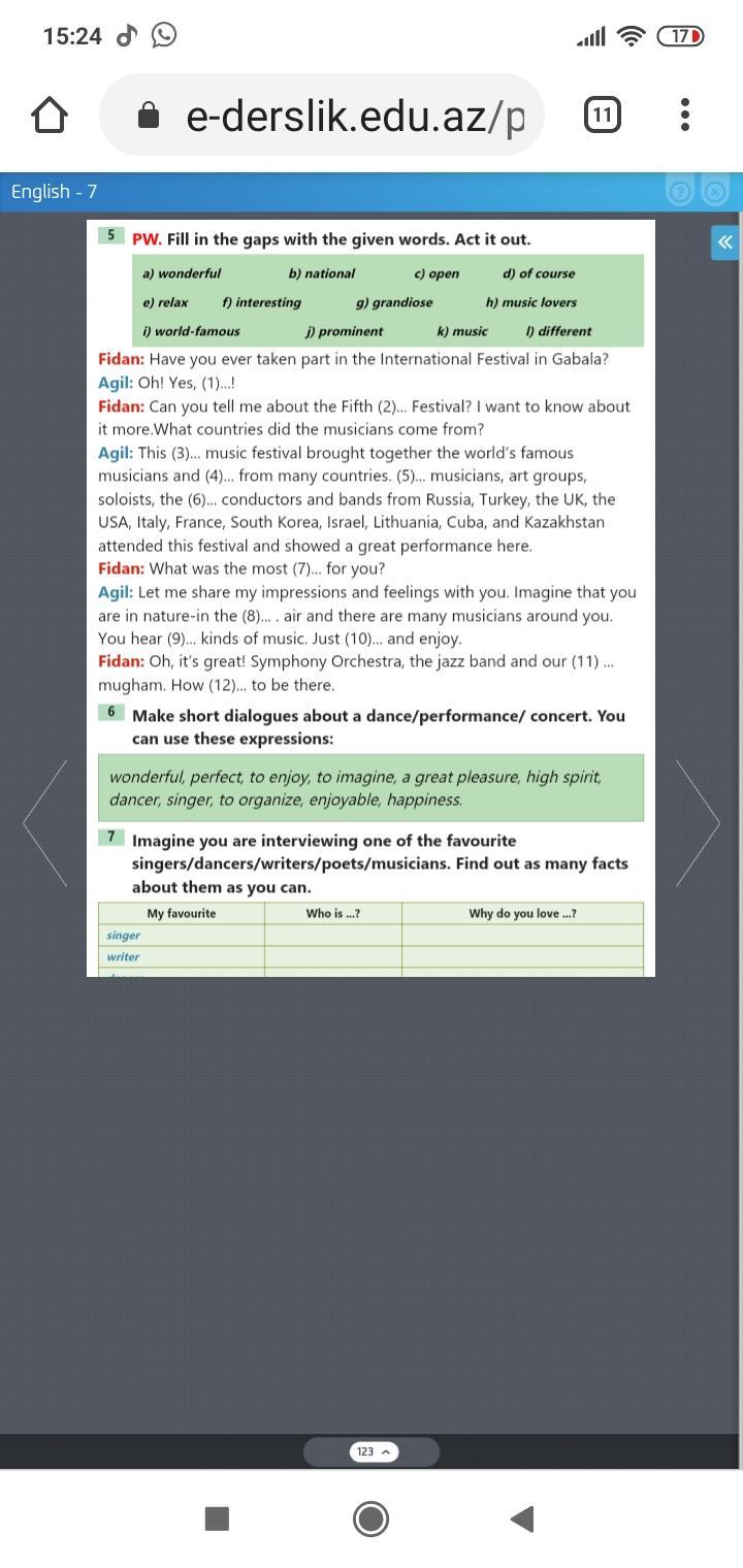 1 of course 2 music 3 grandiose 4 music lovers 5 Prominent 6 word-famous 7 interesting 8 open 9 different 10 relax 11 national 12 wonderful