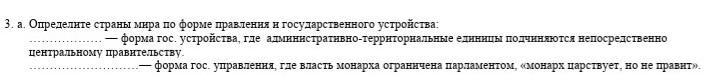 Конституционная монархия - форма государственного управления, где власть монарха ограничена Парламентом, "монарх царствует но не правит". Примеры: Испания, Бельгия, Нидерланды, Дания, Великобритания, Япония и т.д.