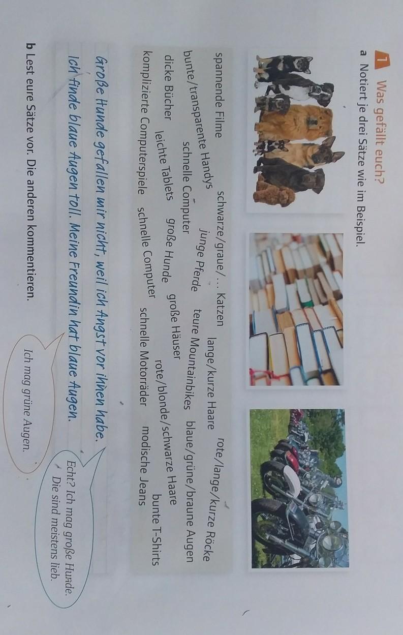3. Lange Haare finde ich toll. Meine Freundin hat lange Haare. - Ich mag kurze Haare.
