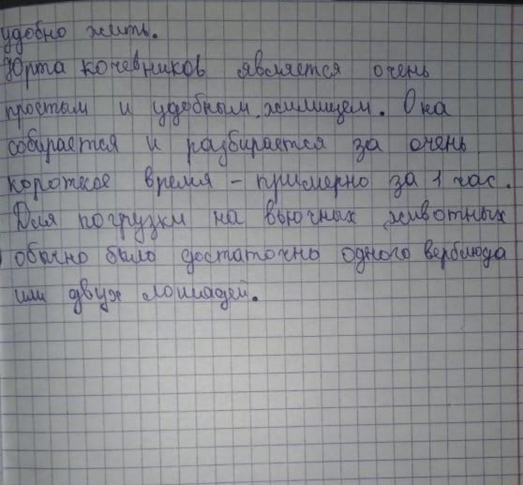 Составить эссе жилище кочевников Критерии к докладу: • Описать причины использования юрты; • Перечислить части, составляющие жилища; • Описать роль каждой составляющей части юрты; • Анализировать уникальность жилища кочевников. Дескрипторы к заданию: Определяют 2-3 причины выбора юрты в качестве жилища казахами; Перечисляют составные части юрты; Определяют функцию каждой составной части юрты; Формулируют вывод об униикальности жилища кочевников.