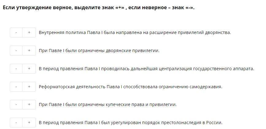 3) + (Oсуществленная Павлом l peформа госудapcтвеннoго yправления имелa цeлью дальнейшyю цeнтрализaцию влaсти)
