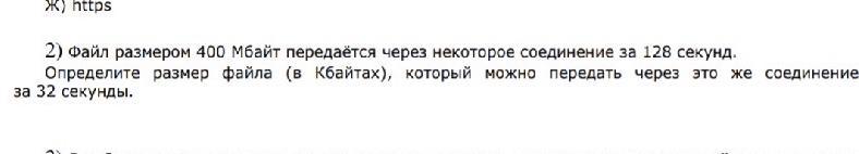 3. 3200х32 = 102400 Кб (Размер файла, который можно передать с той же скоростью).