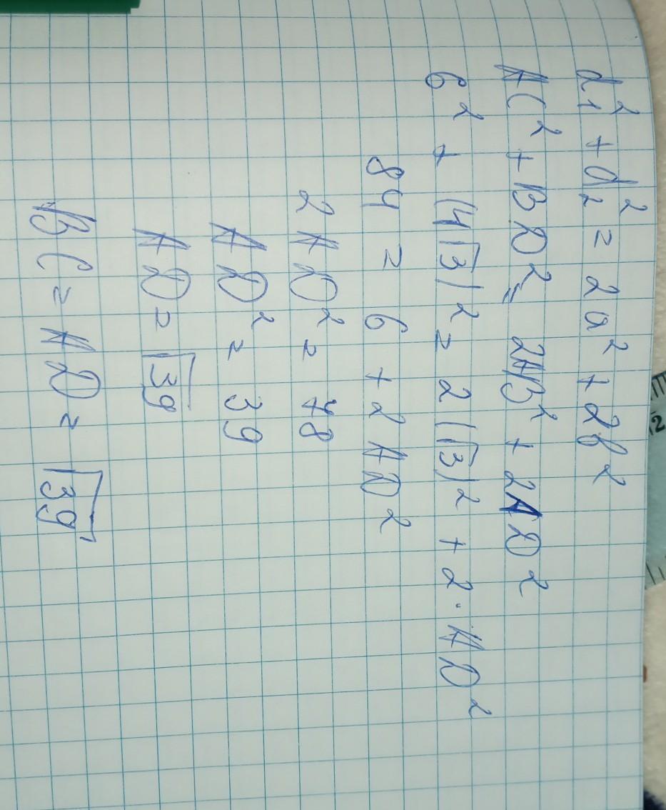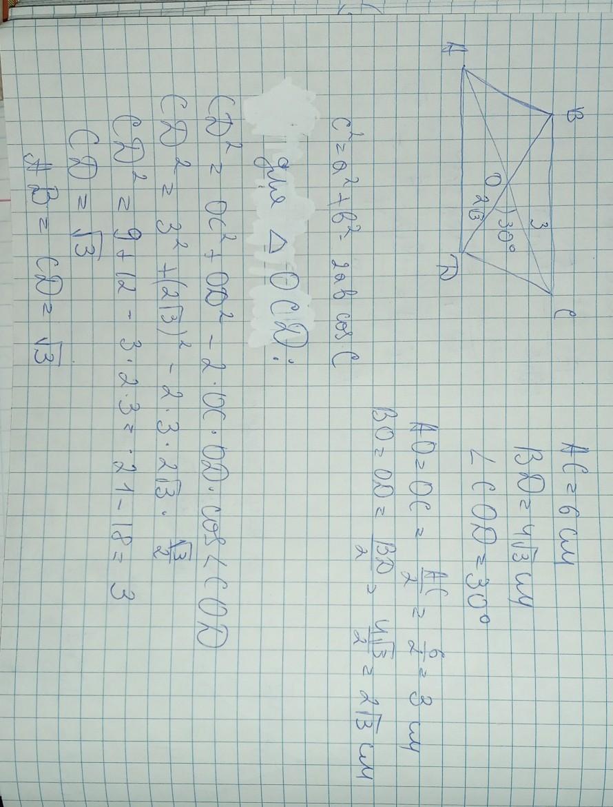 Діагоналі паролелограма дорівнюють 6 см і 4√3 см, а кут між ними дорівнює 30° Знайдіть сторони паралелограма.