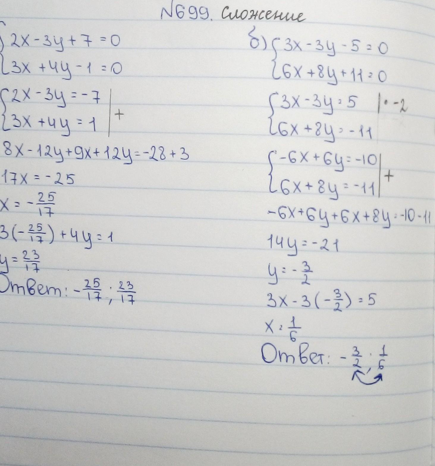 Решить №699 - способом сложения, №720 - способом подстановки.