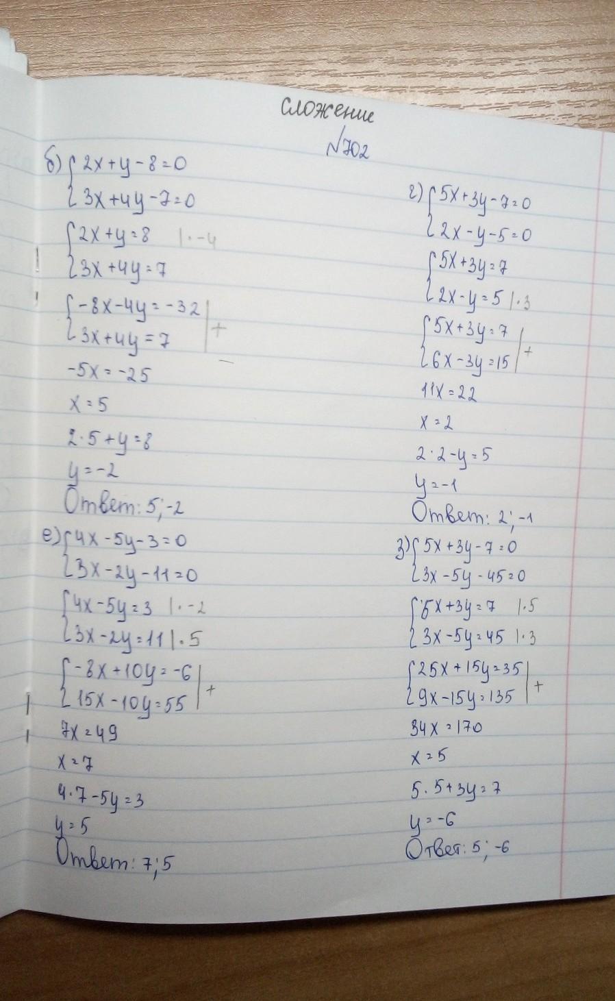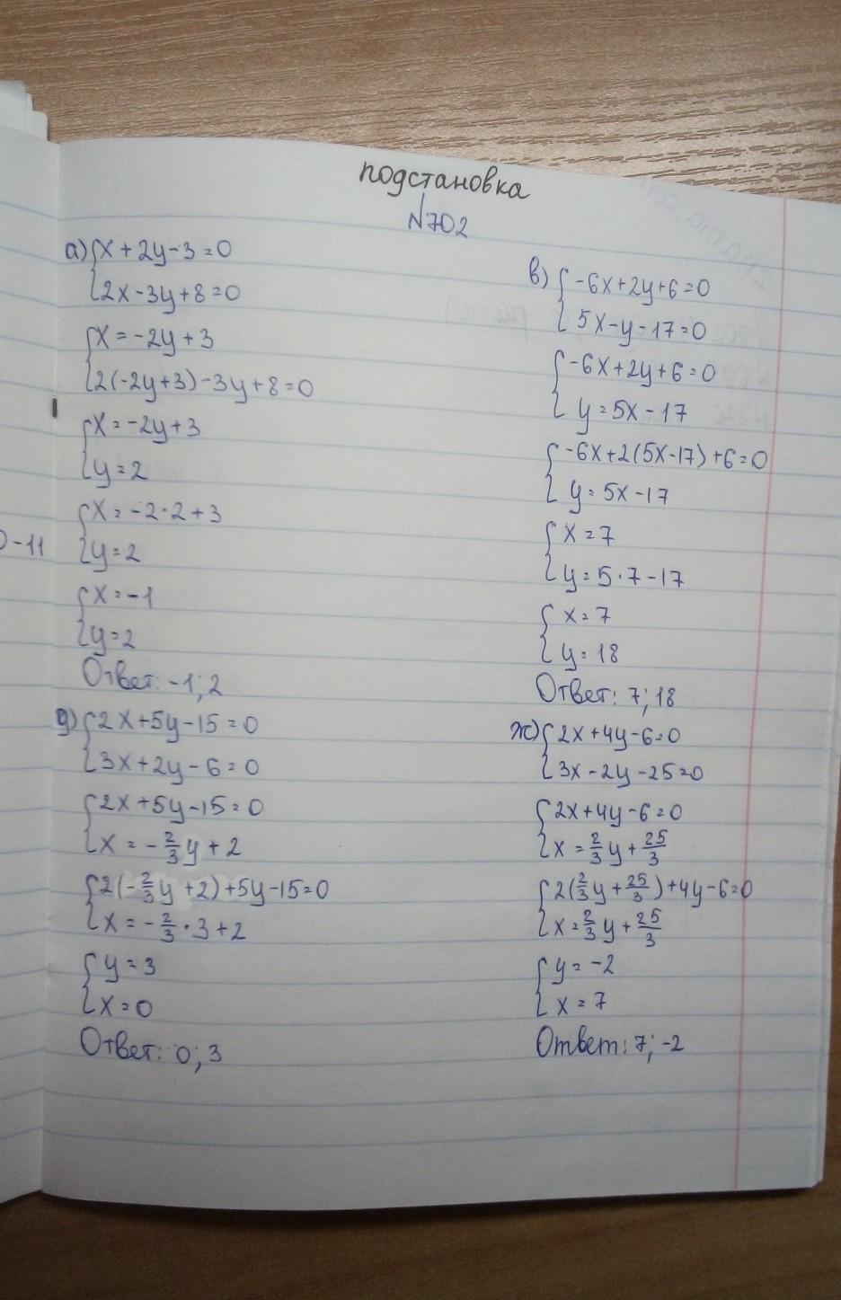 Решить №702 (1 столик - способом подстановки; 2 столбик - способом сложения)