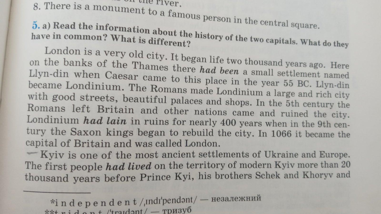 Лондон-очень старый город. Он начал свою жизнь две тысячи лет назад. Здесь, на берегах Темзы, когда Цезарь пришел сюда в 55 году до нашей эры, было небольшое поселение под названием Ллин-Дин. Ллин-Дин стал Лондиниумом. Римляне сделали Лондиниум большим и богатым городом с хорошими улицами, красивыми дворцами и магазинами. В 5 веке римляне покинули Британию, а другие народы пришли и разрушили город. Лондиниум пролежал в руинах почти 400 лет, когда в IX веке саксонские короли начали восстанавливать город. В 1066 году он стал столицей Британии и назывался Лондоном.