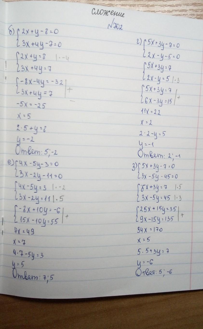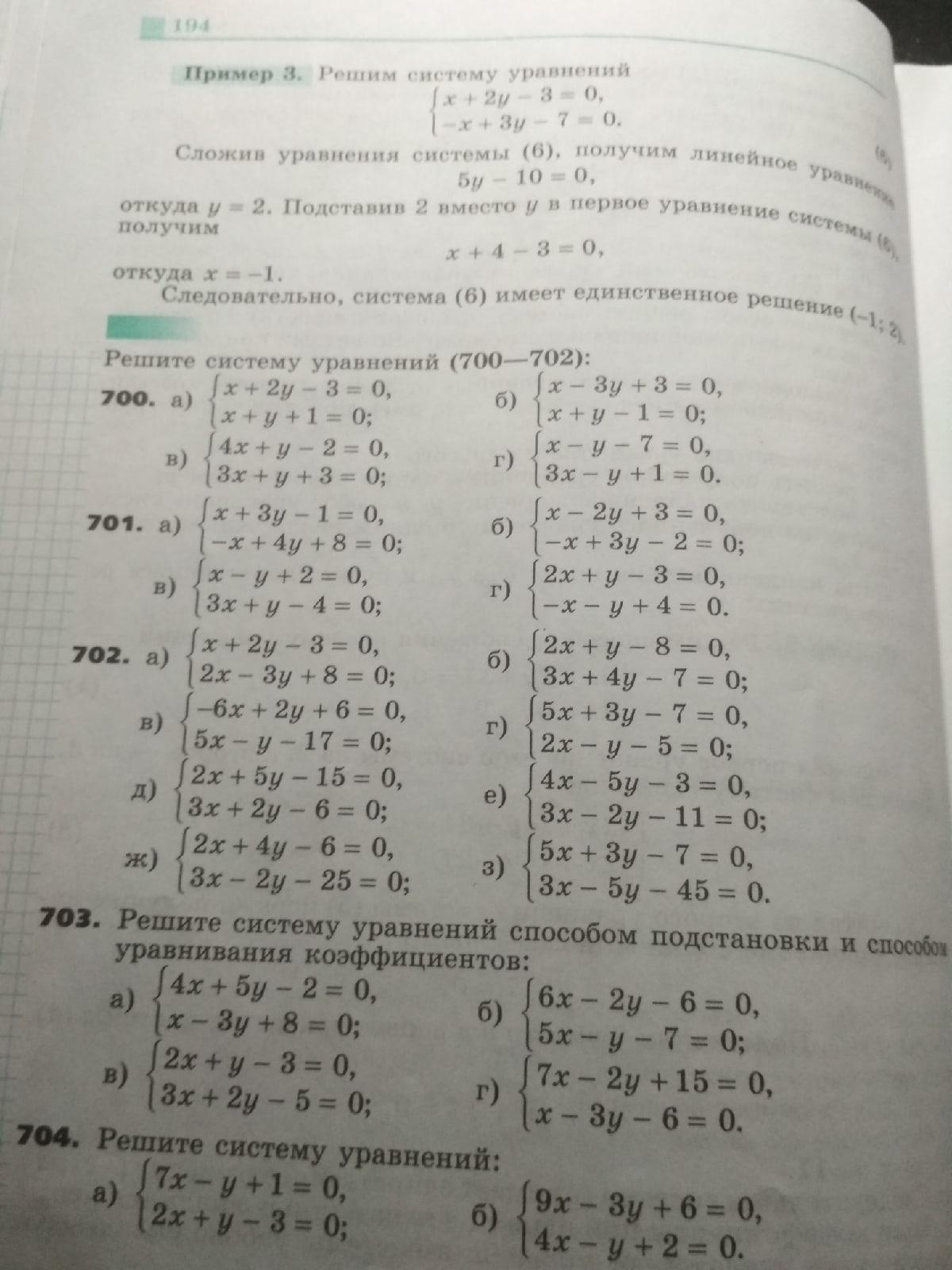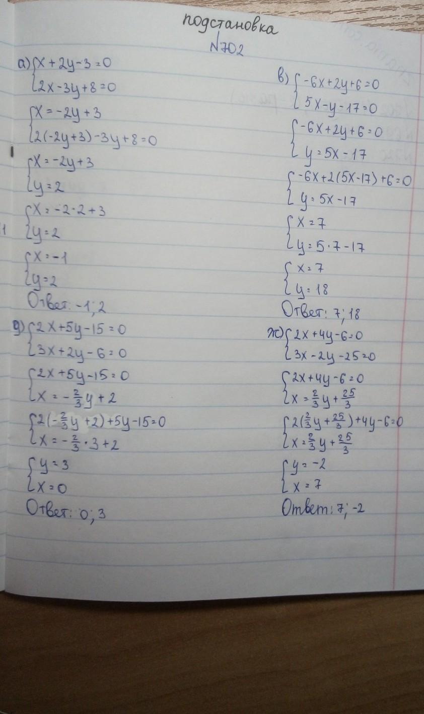 Решить №702 (1 столик - способом подстановки; 2 столбик - способом сложения)