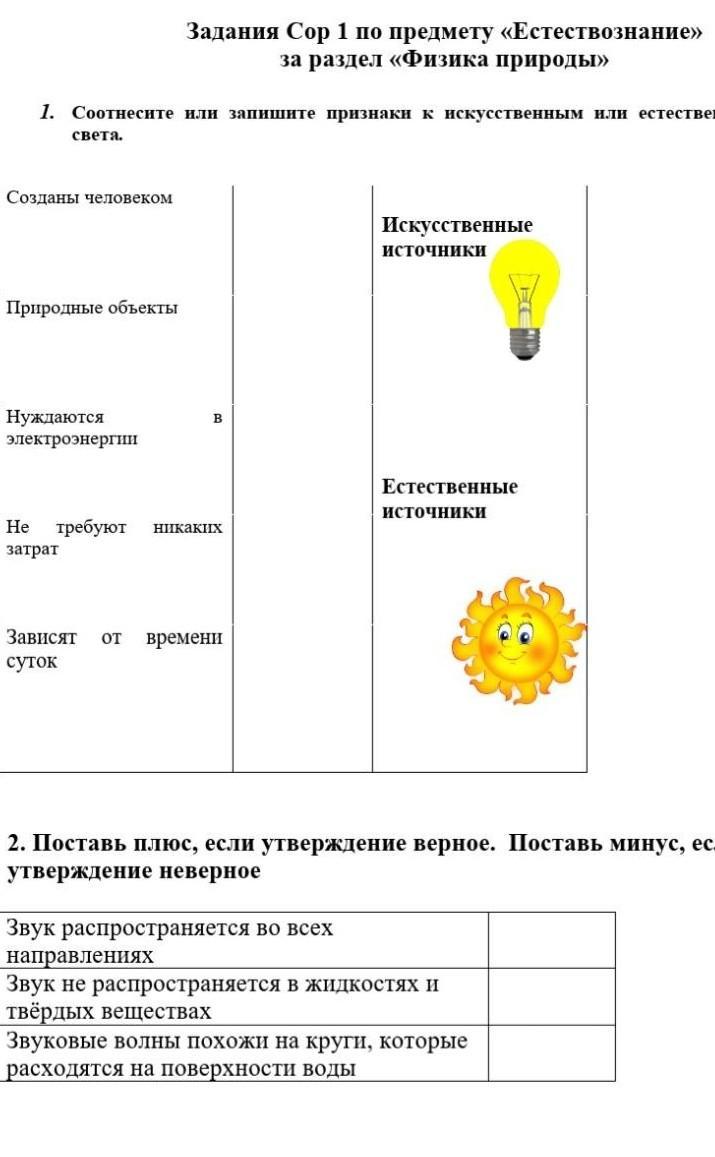 1. Искусственные источники созданы человеком и нуждаются в электроэнергии.
