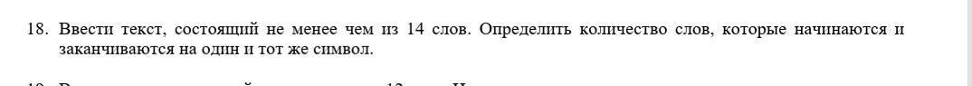 А можно даже короче: ReadString.ToWords.Count(p -> p.First = p.Last).Print