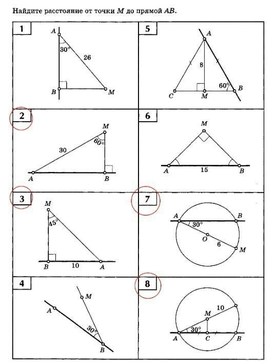 Из ΔМАН, где ∠Н=90*,∠МАВ=30*, а гипотенуза АМ=8, то катет МН лежит против угла 30* и МН=1/2МА=8:2=4