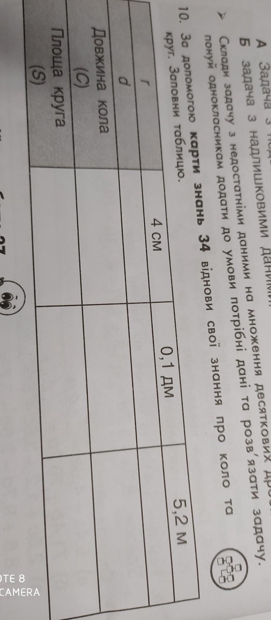 C=2πr 2*4π=8π см 2*0,1π=0,2π дм 2*5,2π=10,4π м