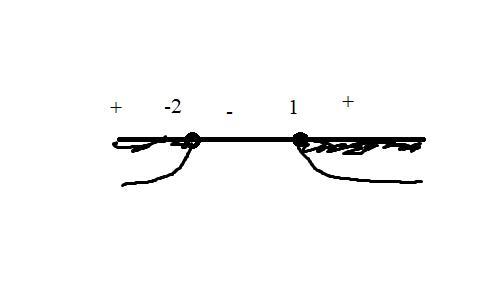 Отсюда вытекает ответ: ( - ∞ ; -2) ∨ (1 ; + ∞)