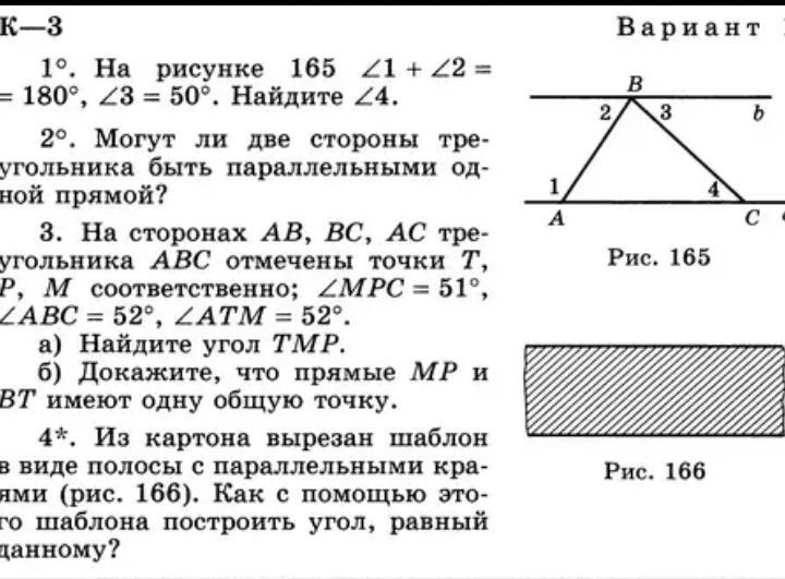 а) ∠АТР = ∠ АВС = 52° по условию, а эти углы - соответственные при пересечении прямых ТМ и ВС секущей АВ, ⇒ТМ║ВС.