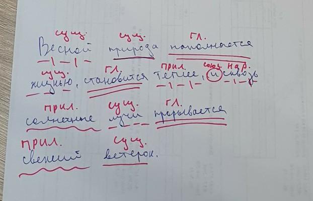весной- дополнение, природа- подлежащее,наполняется-сказуемое