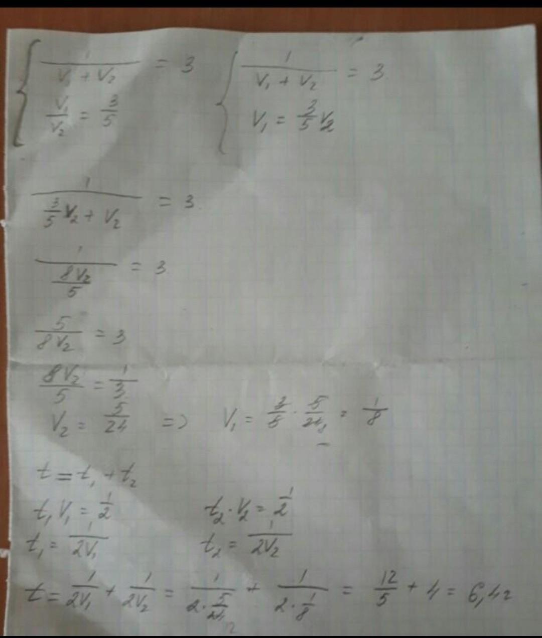 Производительность первого - V1. Производительность второго - V2. Я составил систему. Формула определения производительность t*V=1. Два маляра работали вместе, поэтому их производительности складываются. Если весь забор я принял за единицу, то 0,5 это половина.