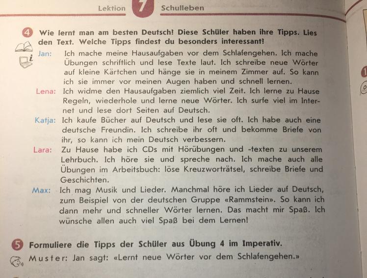 Lara sagt :"Hört Hörübungen und - texten und sprecht nach ! Macht alle Übungen : löst Kreuzworträtsel , schreibt Briefe und Geschichten !".