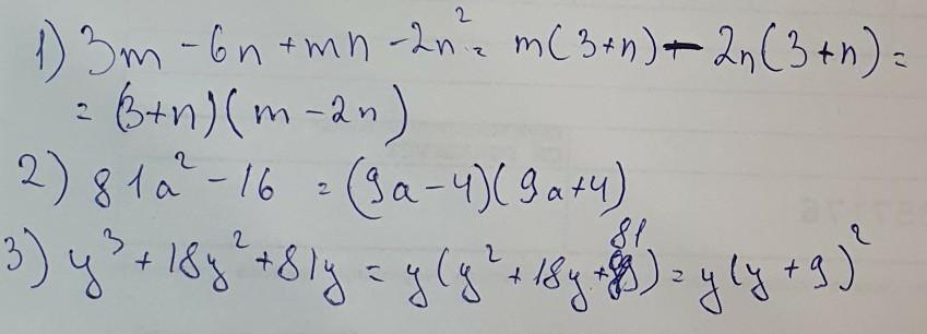 3. y³+18y²+81y = y(y²+18y+81) = y(y²+2*9y+9²) = y(y+9)²
