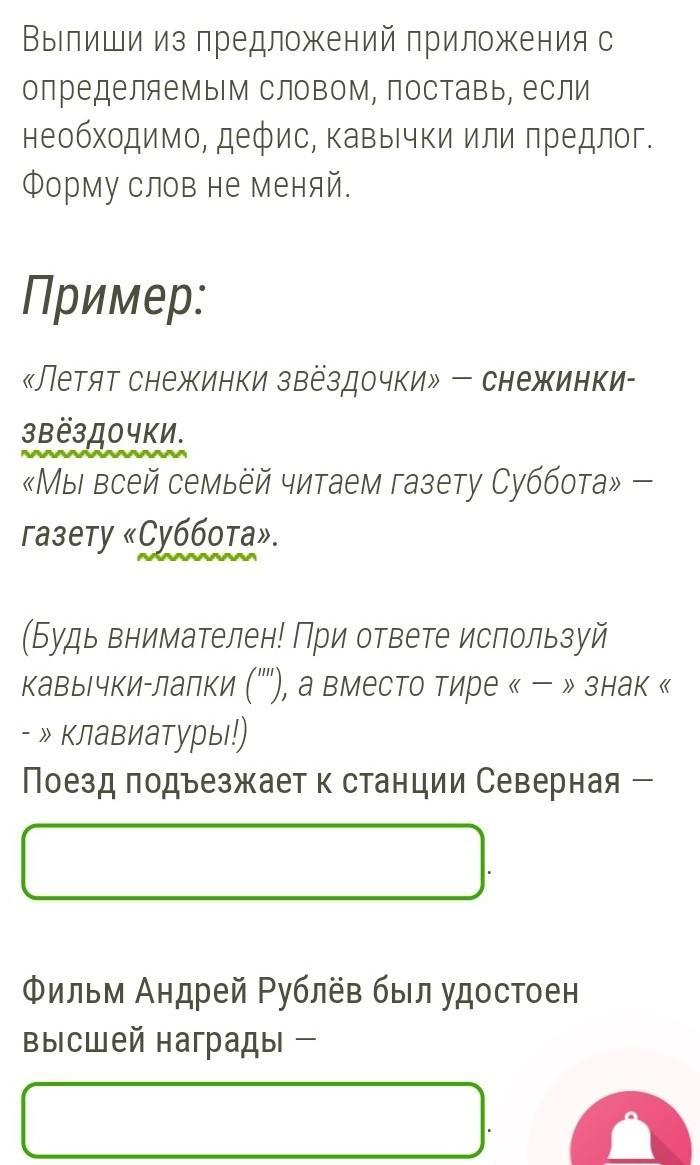 (Будь внимателен! При ответе используй кавычки-лапки (""), а вместо тире « — » знак « - » клавиатуры!)