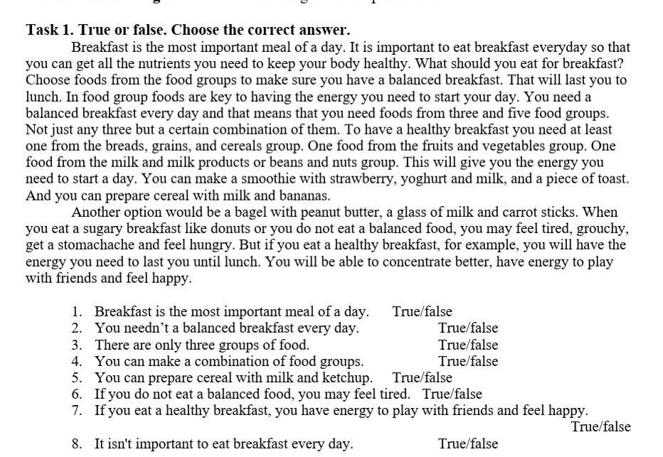 Ответ: 1. T 2. F 3. F 4. T 5. F 6.T 7. T 8 F