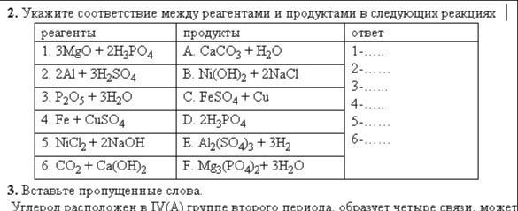 Укажите соответствие между реагентами и продуктами в следующих реакциях