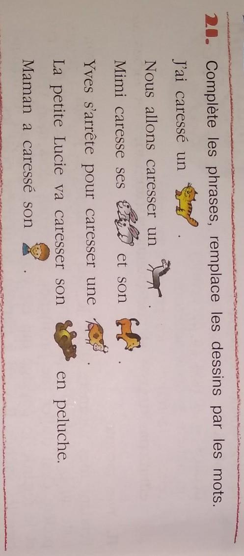 1. chat 2. cheval 3. lapins, chien 4. vache 5. ours 6. fils