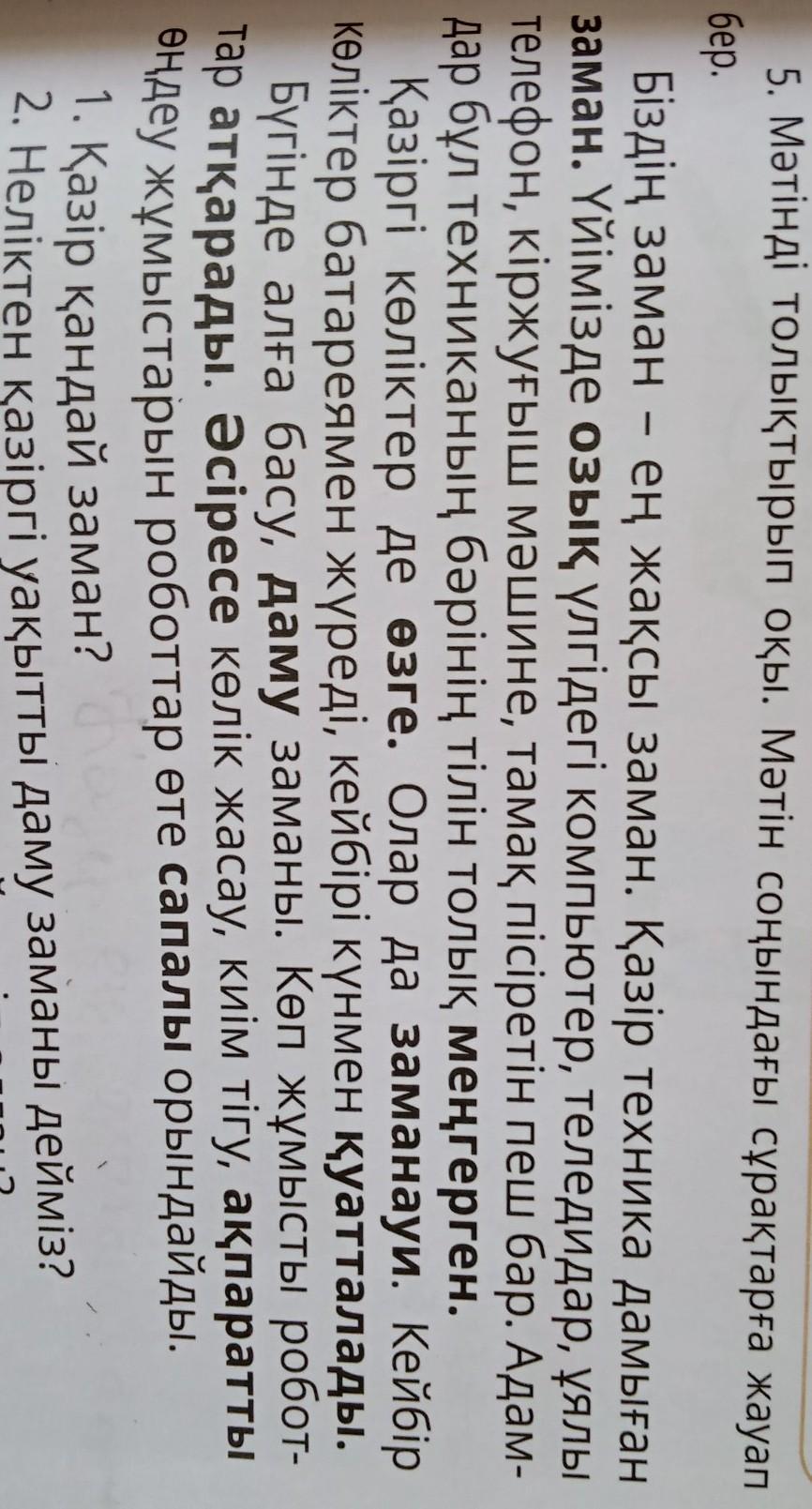 2Бугинде алга басу даму заманы.Биз казирги уакыты даму заманы деймиз ойткени казир технологиялар жумис истейди , коп теген роботтар бар сол ушин