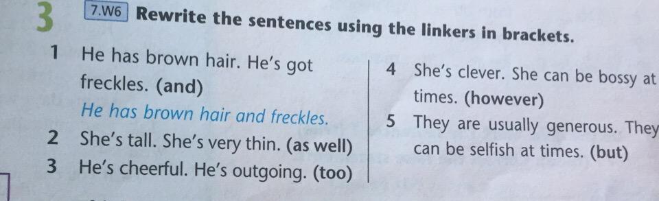 2. Она высокая и очень худая. 3. Он веселый, общительный тоже. 4. Она умна, но иногда может быть властной. 5. Они обычно щедры, но иногда могут быть эгоистичными.