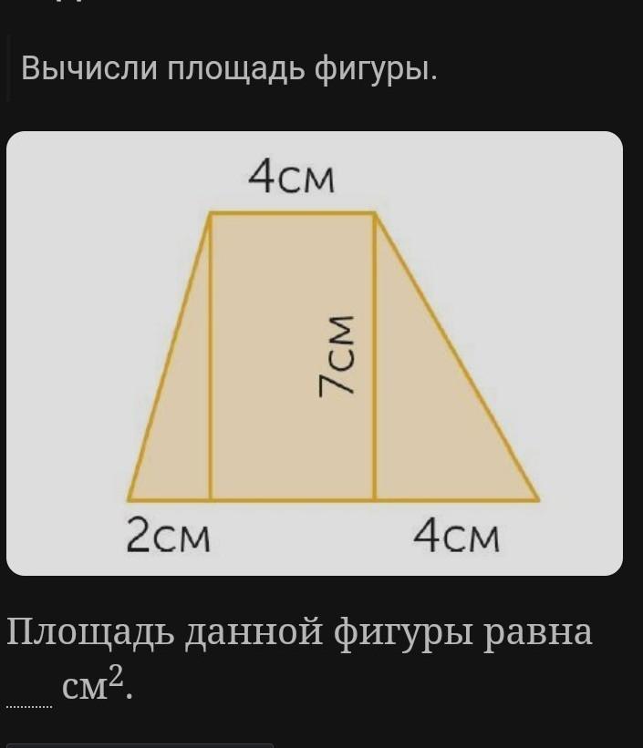Площадь трапеции = 4+(2+4+4)/2*7= (4+10)*7=14*7= 98 см в квадрате