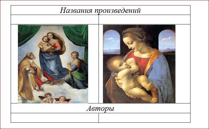 1. Укажите названия и авторов произведений искусства эпохи Возрождения