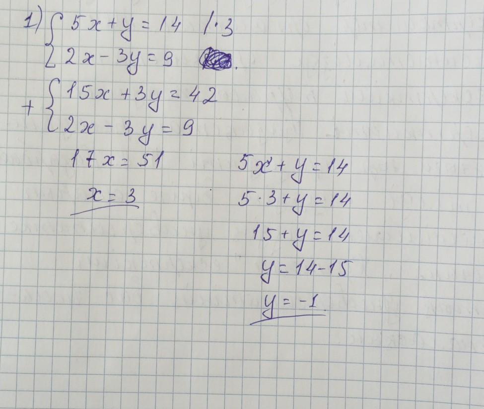 вот так решается: сначала х найдем, потом методом подстановки найдем у