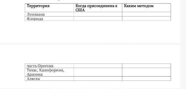 Затем США заставили Испанию уступить Флориду, а в 1846 г. Была присоединена огромная территория Орегона.
