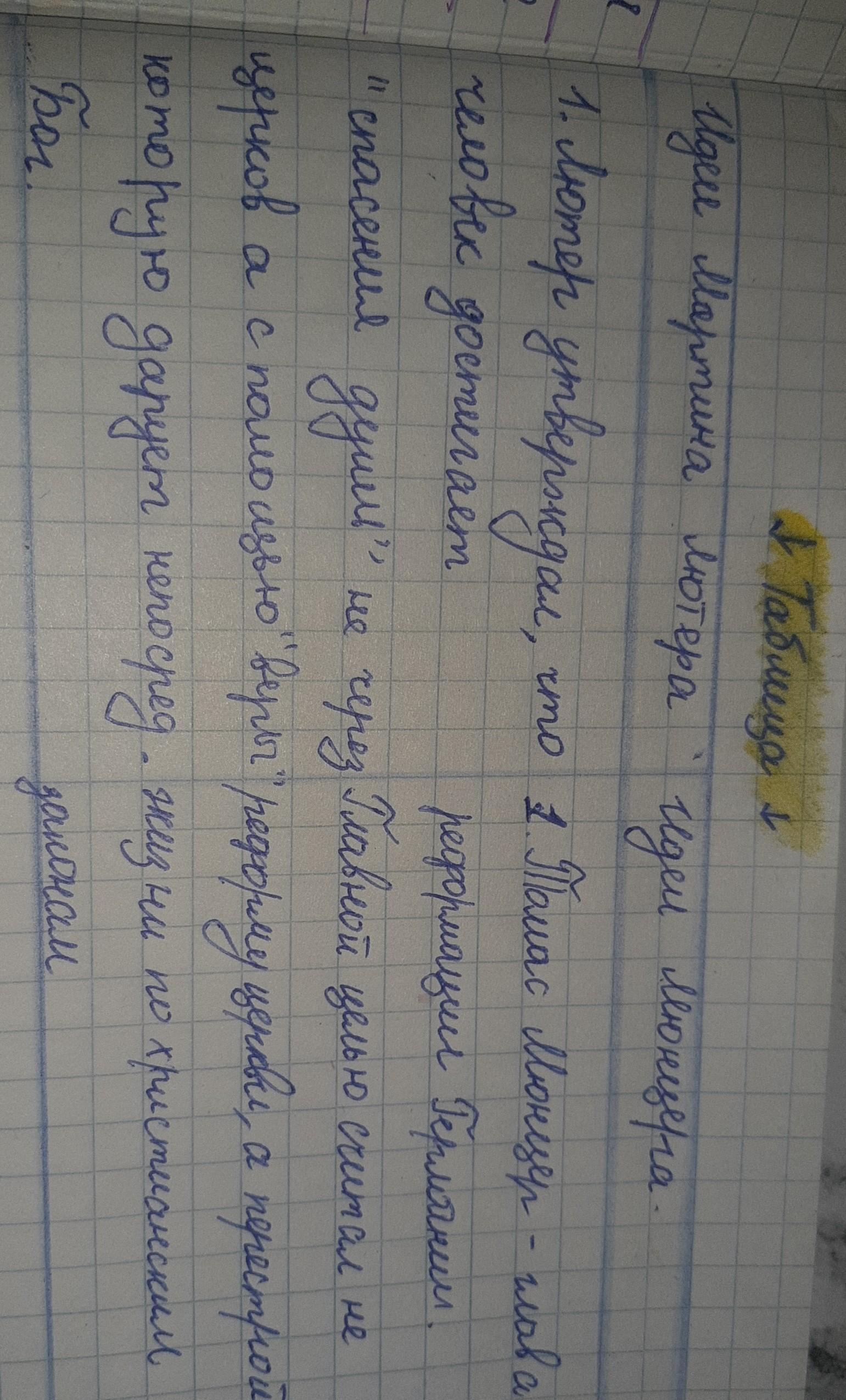заполните таблицу . Сделайте сравнительный анализ идей деятелей Реформации . Идей Мартина Лютеранская идей Томаса Мюнцера