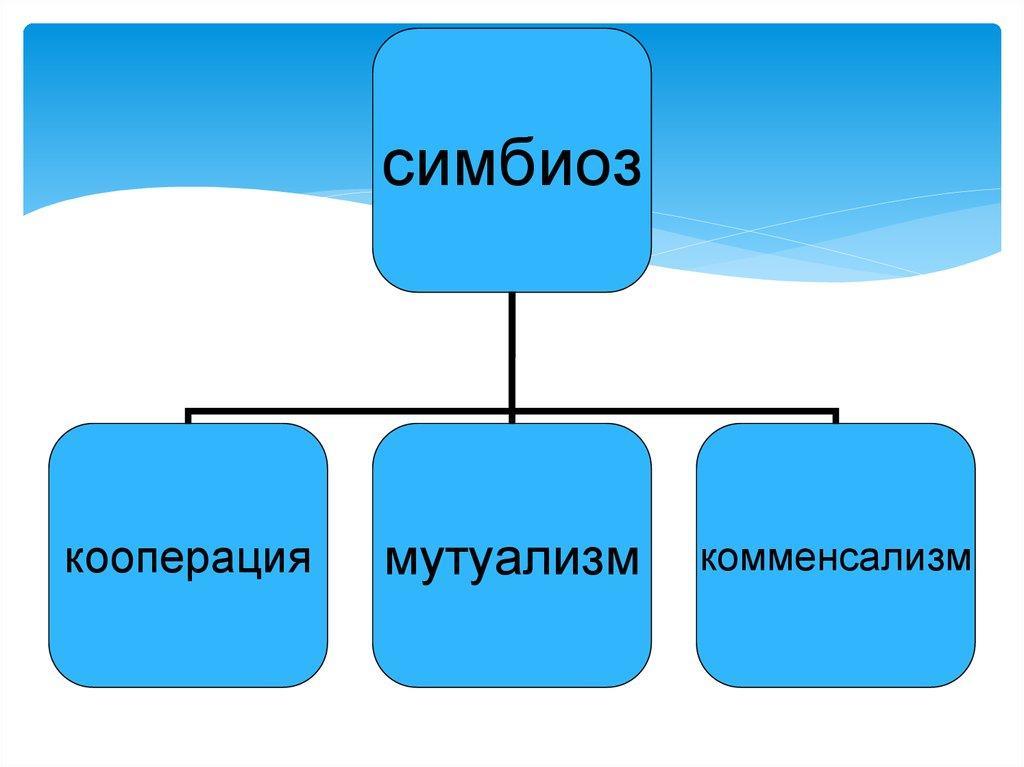 2. Симбио́з (греч. συμ-βίωσις — «совместная жизнь»[1] то есть различные организмы сотрудничают ,выживают в месте тем самым образуя мутуалистический симбиоз . Пример : Рыба-клоун и морской анемон — организмы, сосуществующие в мутуалистическом симбиозе.
