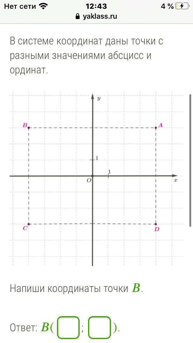 Первое число- положение точки относительно оси Х, второе- относительно Y. Первое число равно -4 (4 единичных отрезка влево от точки (0;0), а второе-3 (3 единичных отрезка выше точки (0;0).